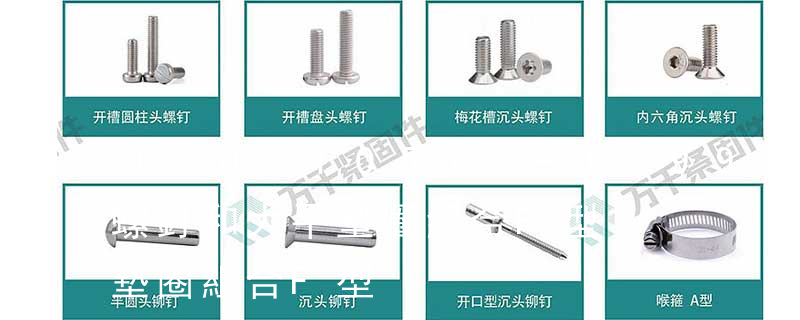 精密類:緊固件咨詢顧問俞文龍認為有盤頭自攻釘、沉頭自攻釘、大扁頭自攻釘、盤頭機螺絲、沉頭機螺絲、大扁頭機螺絲、鉆尾螺釘、六角木螺釘、三角牙自攻釘、各種組合螺絲等 其它類:緊固件咨詢顧問俞文龍認為有焊釘、拉鉚釘、 6.木螺釘:也是與機器螺釘相似,但螺桿上的螺紋為專用的木螺釘用螺紋,可以直接旋入木質構件(或零件)中,用于把一個帶通孔的金屬(或非金屬)零件與一個木質構件緊固連接在一起。這種連接也是屬于可以拆卸連接。7.墊圈: