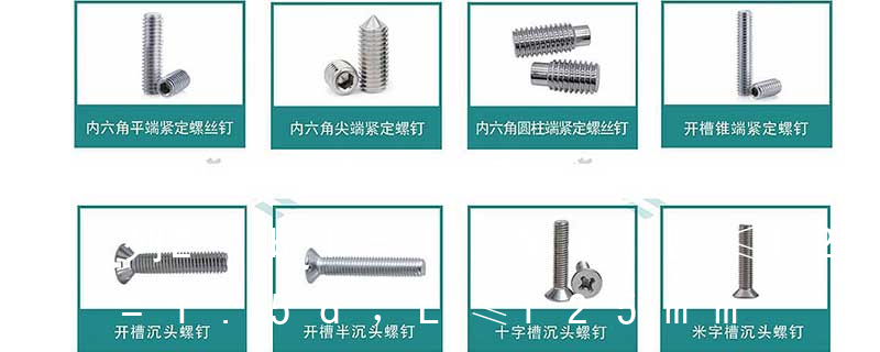例如,效能等級4.6級的螺栓,其含義是:1、螺栓材質公稱抗拉強度達400MPa級;2、螺栓材質的屈強比值為0.6;3、螺栓材質的公稱屈服強度達400×0.6=240MPa級效能等級10.9級高強度螺栓,其材料經過熱處理后,能達到:1、螺栓材質公稱抗拉強度達10 產品系列 產品詳細分類 六角螺栓 (1)外六角全牙:GB5783/DIN933 (2)外六角半牙;GB5782/DIN931(3)B級法蘭面六角螺栓:GB5787(4)活節螺栓:GB798/DIN444 (5)手工焊用焊接螺栓:GB902 方頸螺栓 (