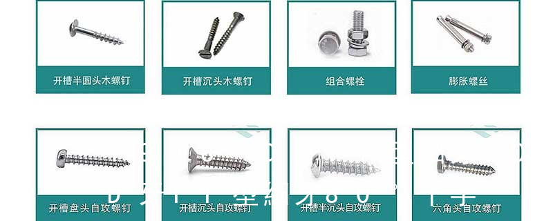 (鐵板牙自攻螺絲) B-2: Plastic Tapping Screw. (塑膠用,自攻螺絲) C: Wooden Screw : 木工螺絲 D: Drywall Screw :水泥墻螺絲 E: Self Drilling Screws鉆尾螺絲(不銹鋼鉆尾螺絲,復(fù)合材料鉆尾螺絲) F:膨脹螺絲,四片膨脹螺絲又