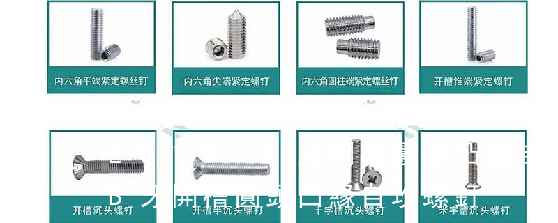 主要分類包括普通螺絲、機(jī)螺絲、自攻螺絲和膨脹螺絲三種。 有頭螺釘Cap screw 過去限于全牙的扣件。 六角頭螺釘Hex cap screw與大六角螺栓Hex bolt 顧名思義為頭部為六角型的外螺紋扣件,設(shè)計(jì)為使用扳手轉(zhuǎn)動。依照ASME B18.2.1標(biāo)準(zhǔn),六 Ex:M3 x 6 – P P B : M3機(jī)械螺絲,6mm 長,十字,圓扁頭,鍍黑。Finish Code:外觀處理規(guī)格 Head Code:頭部外型。螺絲頭部外形。圓柱頭。半沉頭。沉頭。球面圓柱頭。盤頭。半圓頭。六角頭。螺絲頭部外形 Thread