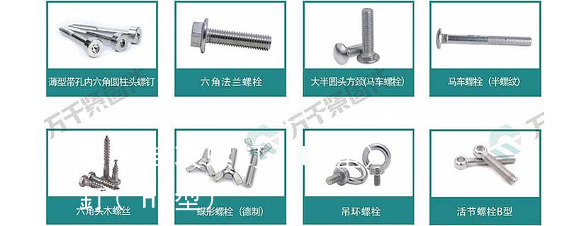 六角花形等;內扳擰:一字槽、十字槽H型、十字槽Z型、十字槽F型、四方槽、復合槽、內花鍵、內六角花形、內三角、內六角、內12角、離合器槽、六葉片型槽、高扭矩十字槽等。3、螺紋種類螺紋種類繁多,有自攻螺紋(
